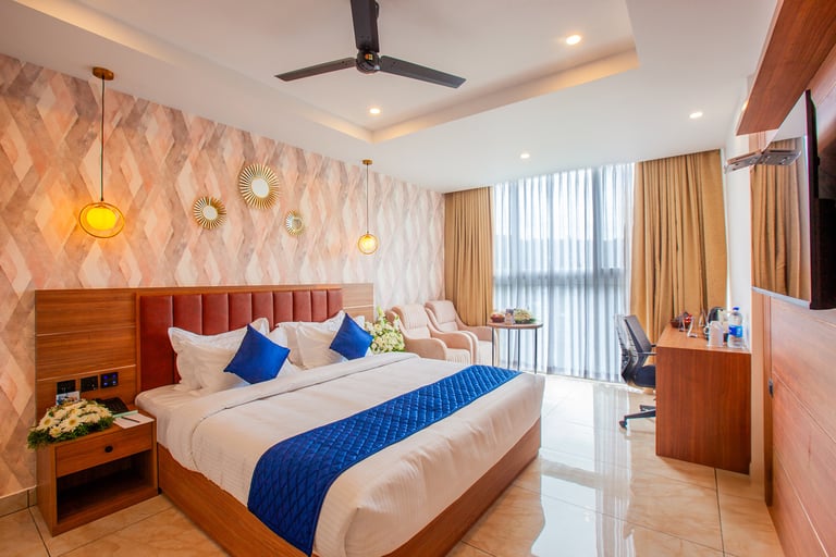 The Grand Sanvika Rammakkalmedu features a line up of elegantly designed guest accommodation facilities and this include Suite to Twin Rooms. The Suite rooms portray plenitude in its every feature. They are spacious and comes with separate living room, spacious bedroom and ensuite washroom. Deluxe room is also a perfect choice for a relaxed stay as it features all the state-of-the-art features for a seamless experience. The Honeymoon Rooms here sports a loveable ambience and cozy interiors whereas Inter Connected rooms cater well to the needs of group travellers and families. Twin bedrooms and Disabled friendly rooms are also there offering all the basic in room facilities and top line amenities for a peaceful and stress free stay. Sanvika Inn is the home of your dreams to stay enjoying the untainted charms of nature around.
